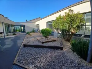 La résidence Les Maisons de l’Harmonie à La Chaize Giraud accueille les résidents dans trois maisons. Deux d’entre elles disposent d’une terrasse donnant sur le